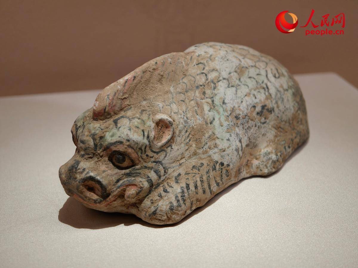 彩绘陶镇墓兽。人民网记者 韦衍行摄