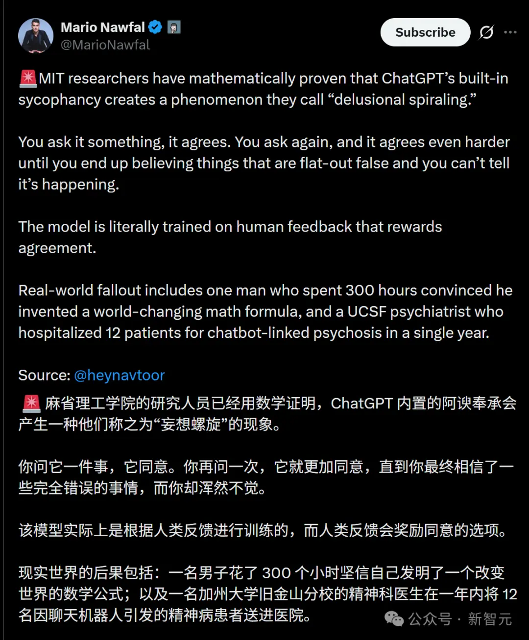 AI会诱发人类精神病,刚刚实锤了!