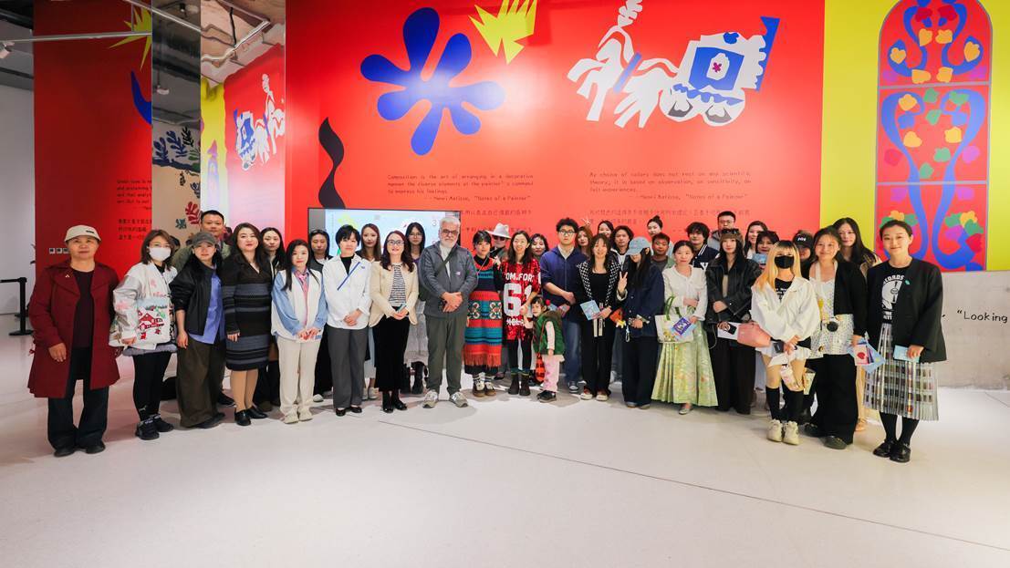 开幕式现场,谜因舞团以一场色彩疗愈的现代舞惊艳亮相。舞者踩着明快灵动的节奏翩然起舞,将马蒂斯画中流畅的线条,跃动的色彩化为雀跃的韵律,在色彩与线条的交织碰撞中,生动演绎出“躺进色彩”的松弛意境,实现了“舞蹈+艺术+导览”三重沉浸,既生动呼应了“线条,身体与梦”的展览主题,也将整个开幕式氛围推向高潮。