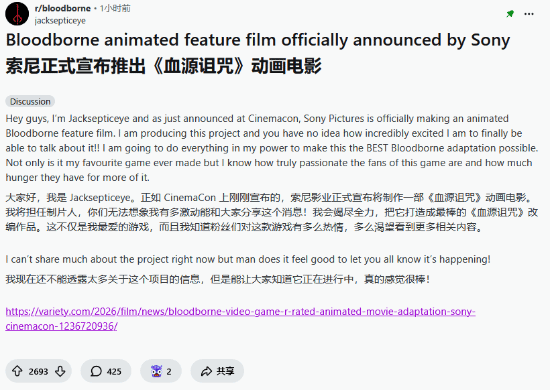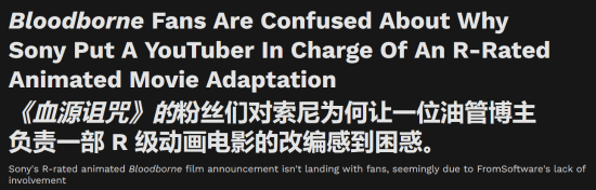昨日我们曾报道,索尼在CinemaCon上正式宣布,将制作一部基于《血源》改编的动画电影,知名Youtube博主Jacksepticeye担任制片人。